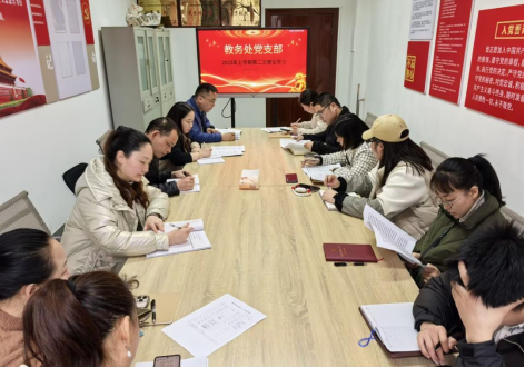 3月18日下午,教务处党支部组织召开本学期第二次教职工理论学习,会议由支部书记李虹霞主持。